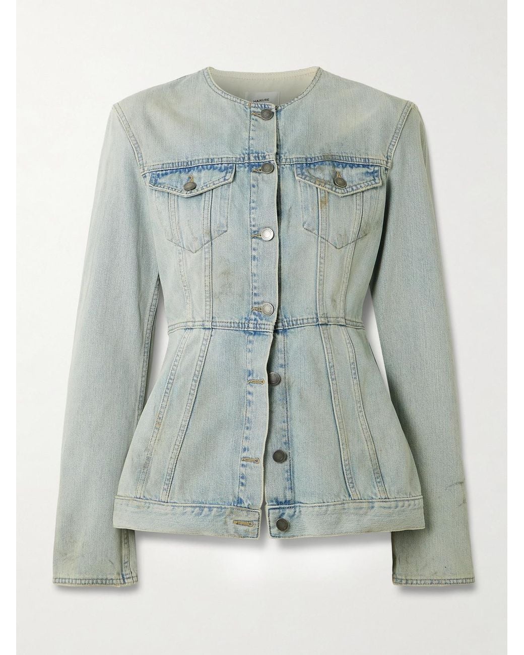 Women's Blue Temple Distressed Denim Peplum Jacket