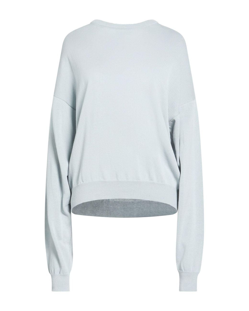 HALFBOY. knitted, lightweight knit, open back, brand logo, plain colour, crewneck, long sleeves, machine wash or dry clean, do not bleach, do not tumble dry. 80% Organic cotton, 20% Silk. Colour: blue