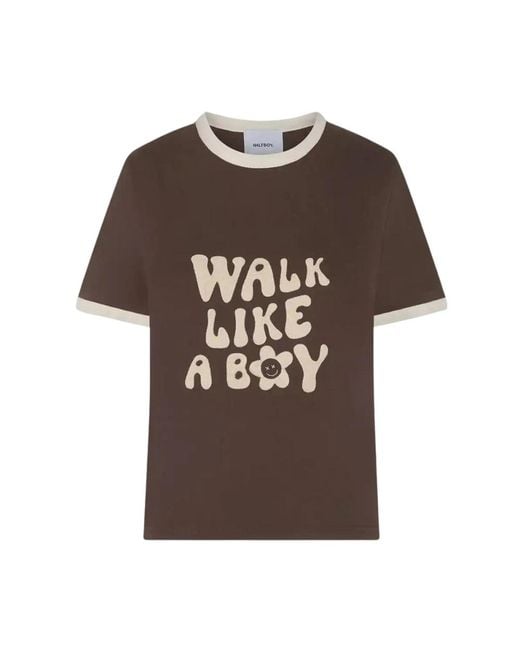 The Halfboy Chocolate Brown T-Shirt combines casual comfort with a modern statement. Made from 100% soft cotton, it offers a pleasant wearing experience for everyday use. The bold 'Walk Like A Boy' print with embroidery on the front makes a clear fashion statement, while the contrasting details on the collar and sleeves give the design a distinctive retro touch. A versatile must-have for any wardrobe. Highlights: Pure cotton for maximum comfort Striking 'Walk Like A Boy' print with embroidery Contrasting details on collar and sleeves Regular fit for a timeless silhouette Ideal for sporty-urban looks. Styling tip: Pair the Halfboy Chocolate Brown T-Shirt with a cool leather jacket and wide-leg jeans for a casual street style look. On warm days, it pairs perfectly with shorts and trainers. Colour: brown