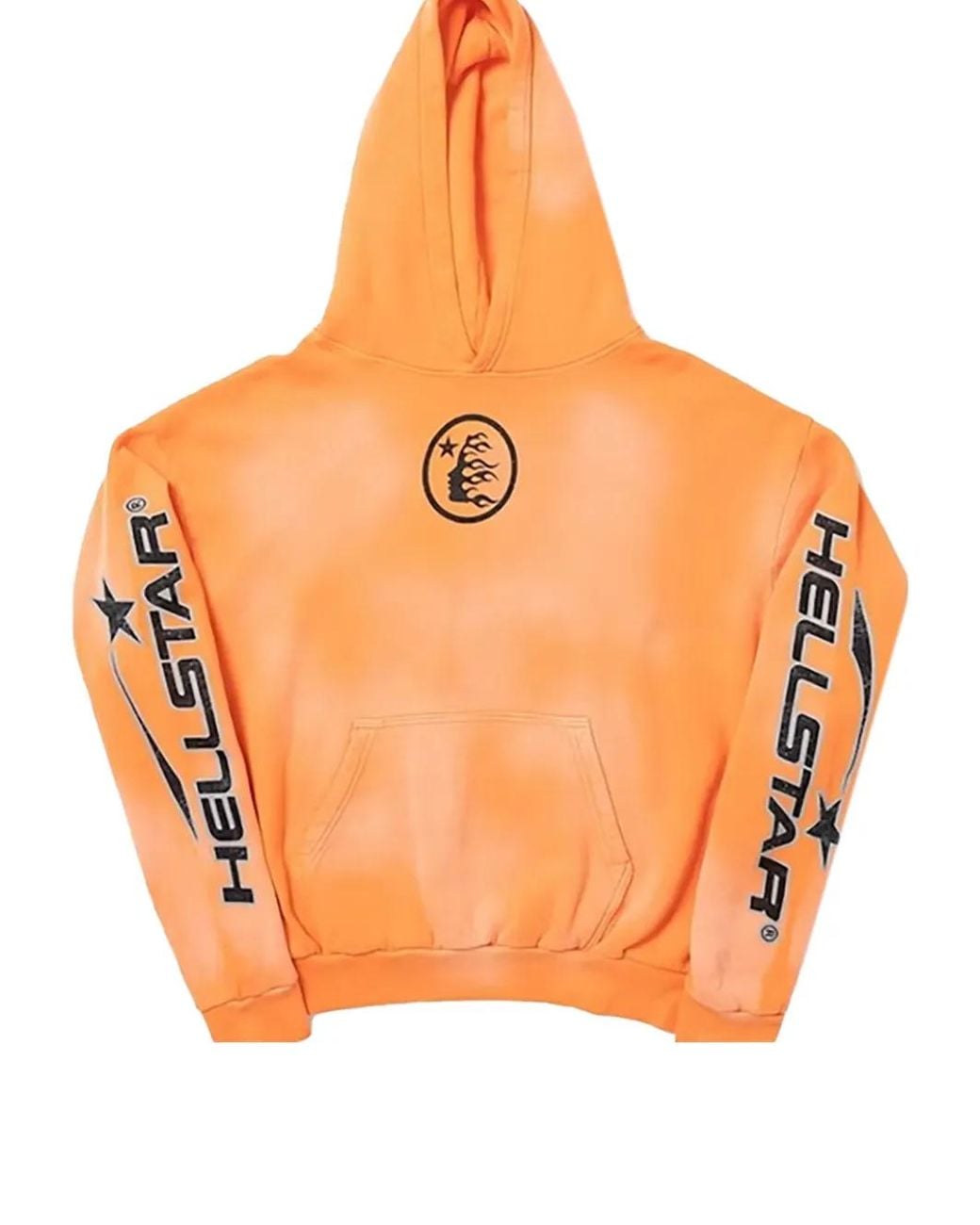 Orange logo on the sleeves logo on the front hooded front pouch pocket long sleeves Size: M. Gender: Male. Material:Fabric. Colour: orange