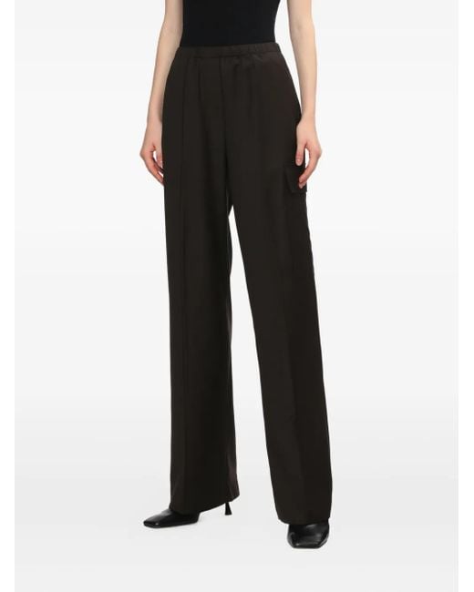 Women's Black Elastic-Waist Cargo Trousers