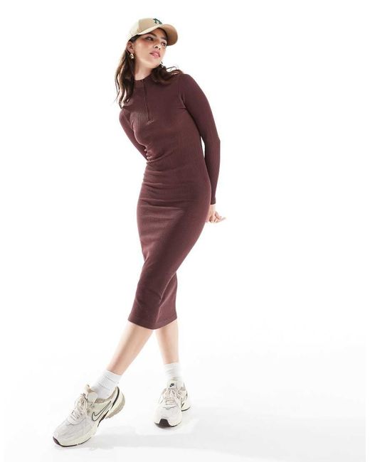 Women's Purple Ribbed Base Long Sleeve Midi Dress