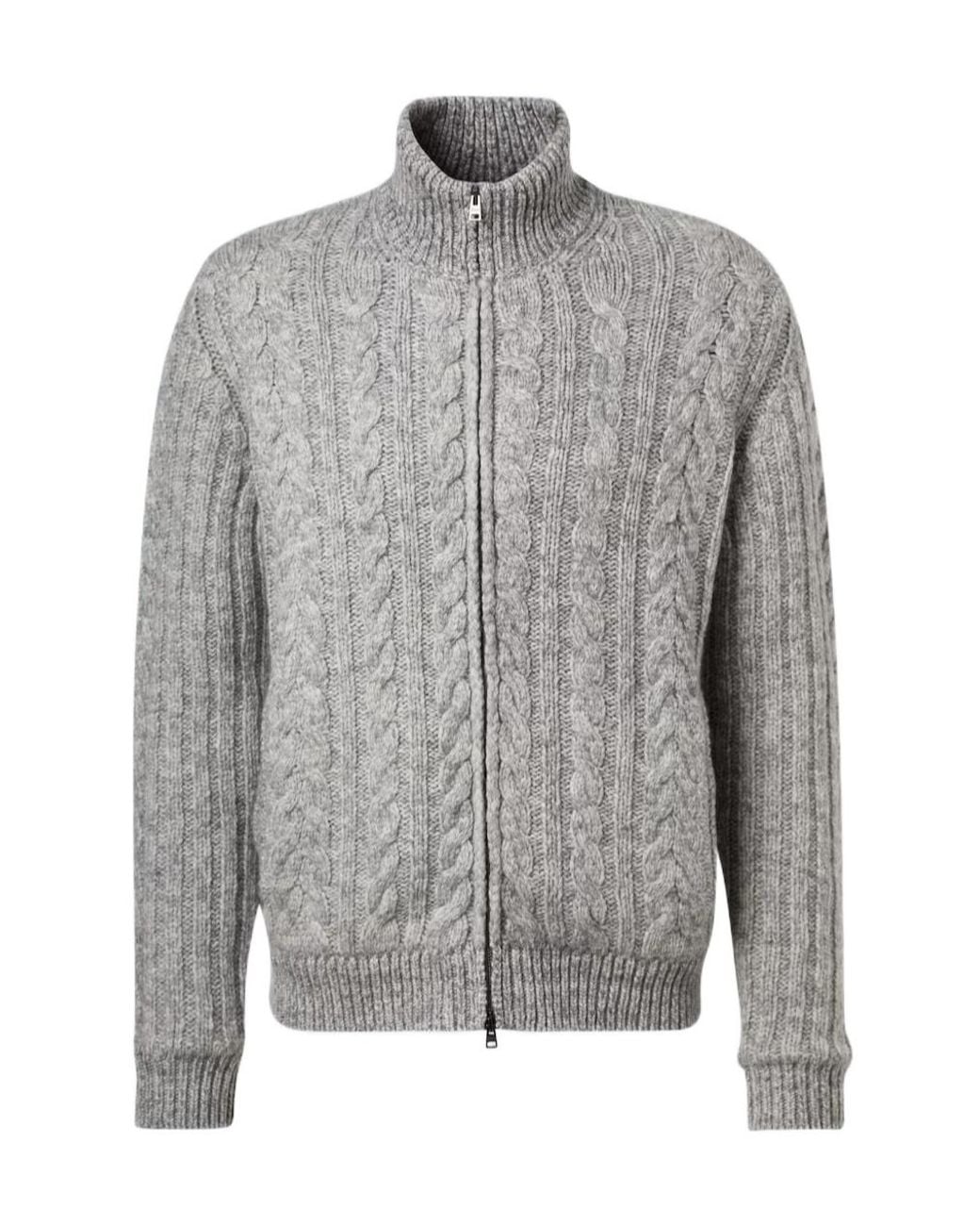 Men's Grey Cable-Knit Casual Jacket