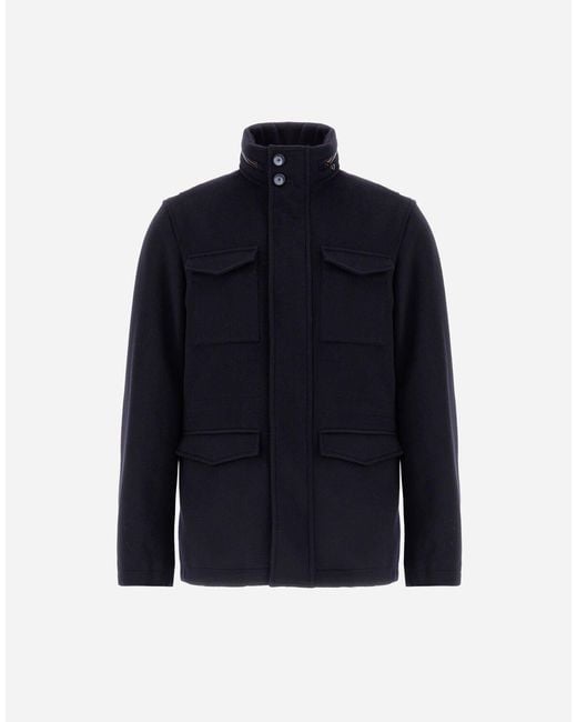 Men's Blue Wool Cashmere And Ecoage Field Jacket
