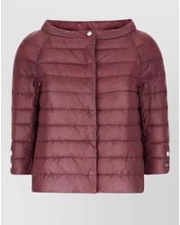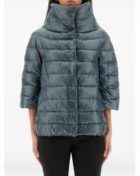 Herno Women's Grey Funnel-Neck Three-Quarter Sleeve Coat