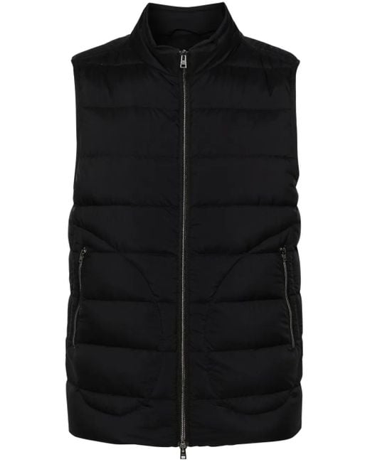 Black down-feather filling quilted lightweight construction mock neck front two-way zip fastening sleeveless two side zip-fastening pockets internal zip-fastening pockets drawstring hem full lining Size: 52. Gender: Male. Material:Polyamide/Polyurethane/Polyamide/Polyester/Down/Feather.