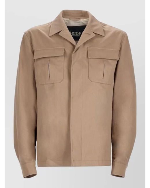Men's Natural Long Sleeve Coat Flap Pocket Design
