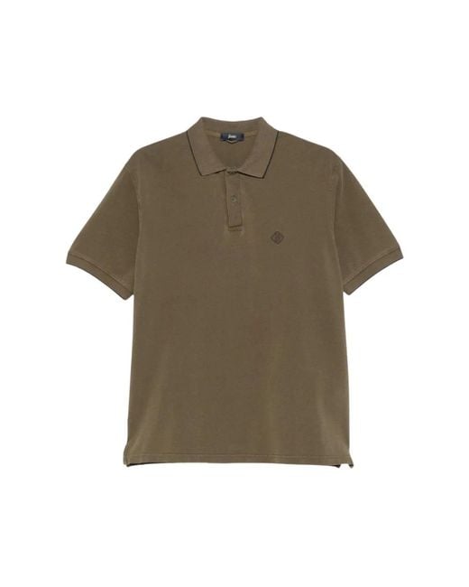 Green polo shirt with embroidered logo by Herno for men. Colour: green