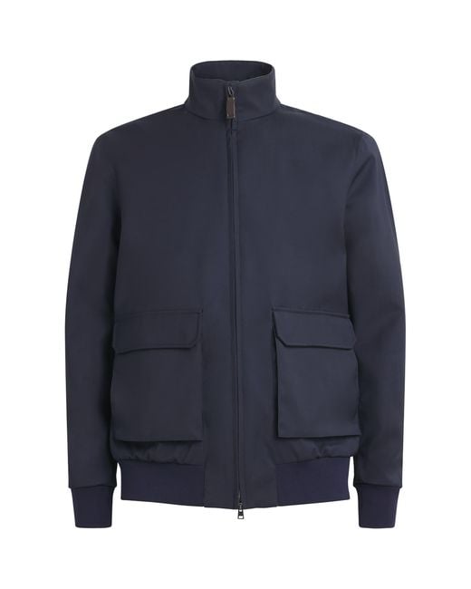 Men's Blue Virgin Wool Bomber Jacket