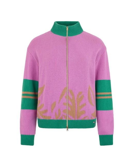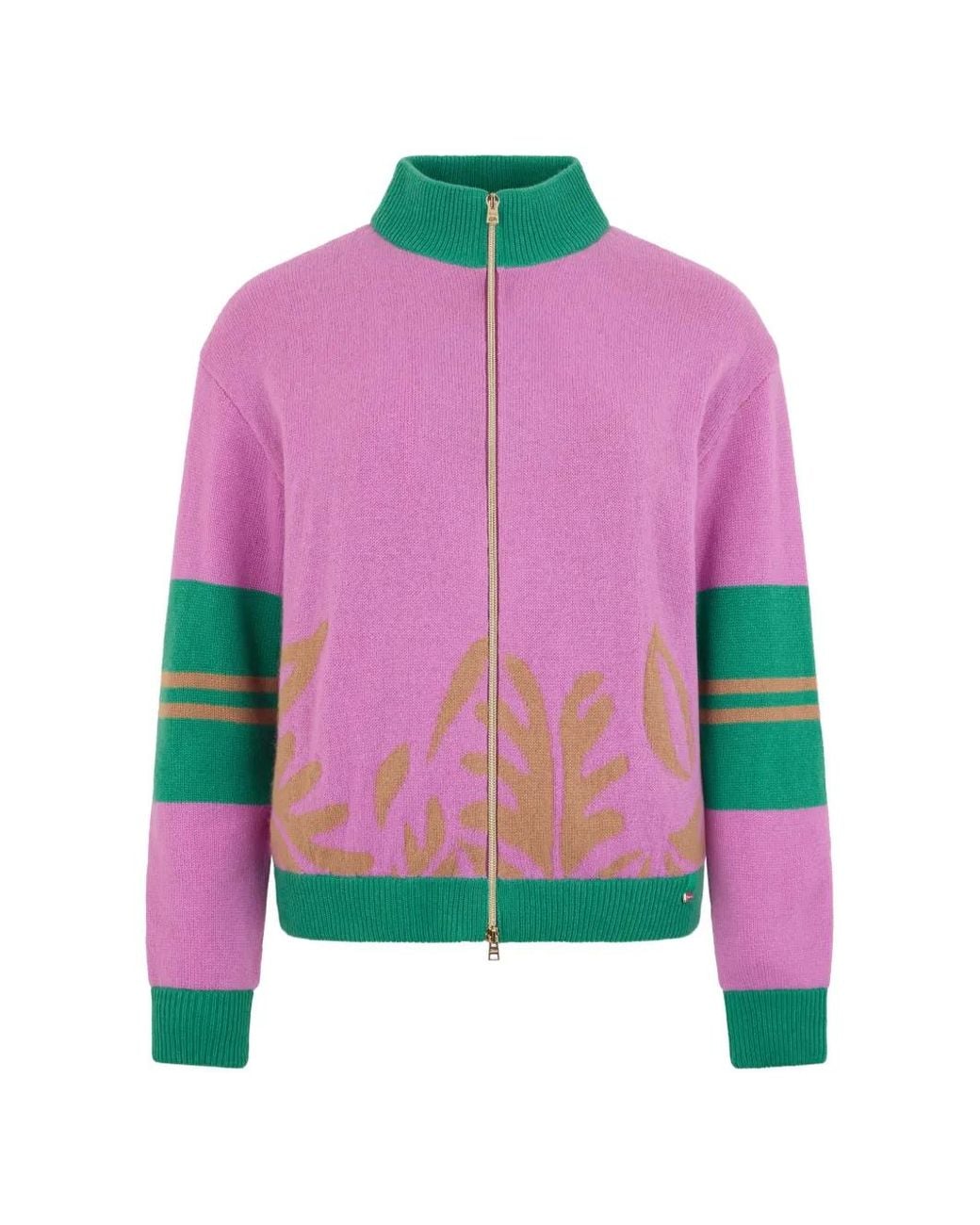Pink, beige and green leaf pattern zip fastening high neck Size: 38. Gender: Female. Material:Cashmere. Colour: pink