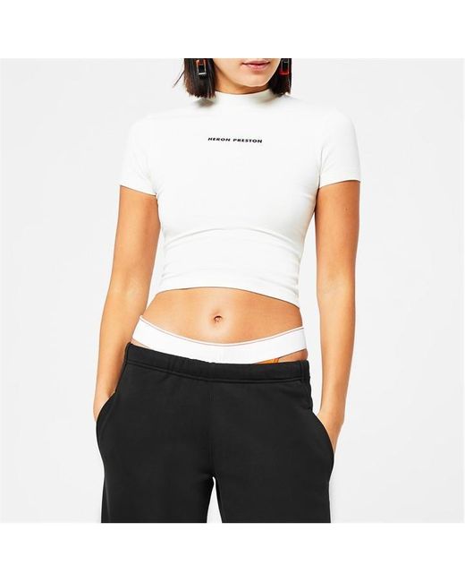 The Heron Preston Crop Top is cut short through the body with a crew-neck that sits close to the collarbone. Logo detailing marks the front panel. Product Highlights • Slim fit follows the natural shape • Short sleeves with crew-neck • Cotton mix fabric supports machine washing