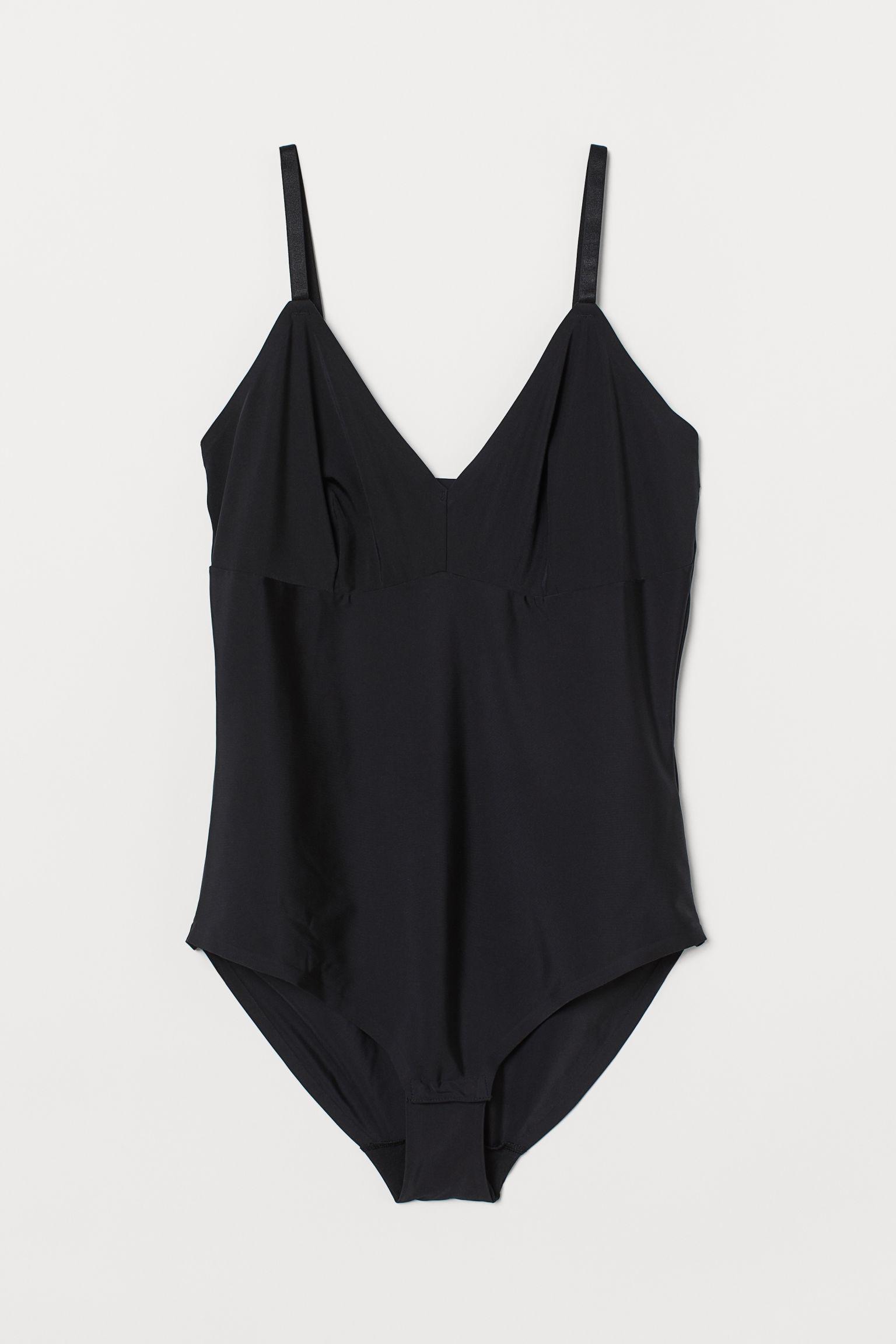 Bodysuit in thick microfiber to hold and shape waist. Adjustable shoulder straps and unlined cups for a natural shape and light support. Folded, glued seams at top and at hems for a seamless, comfortable feel against skin and minimal visibility under garments. Gusset lining: Cotton 100%. Polyamide 80%, Elastane 20%. Machine wash cool. Colour: black