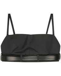 Go to SSENSECotton herringbone top. Stripes throughout. · Layered construction · Round neck · Logo patch and loops at hem · Self-tie fastening at side seam and shoulder · Logo embroidered at back Each item