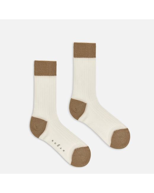Socks featuring alternating ribbing with lurex inserts and Hogan logo on the sole. Colour: natural