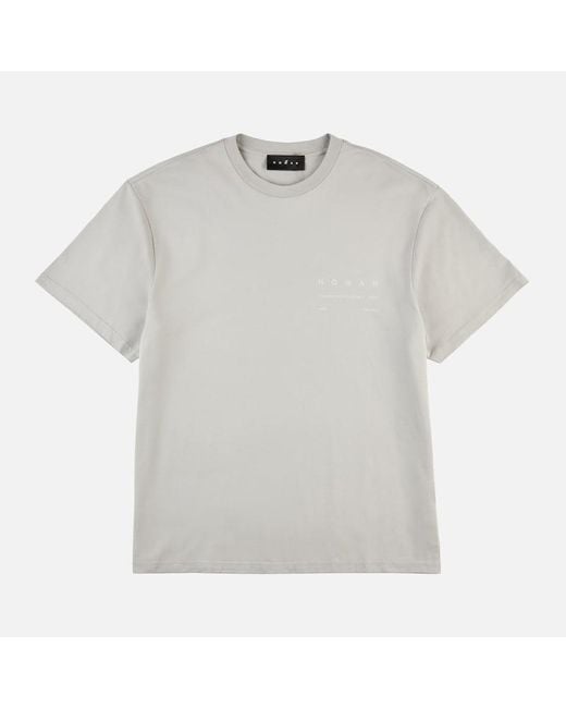 Unisex round-neck T-shirt with boxy fitting, crafted in cotton jersey. Featuring a Via Monte Napoleone address logo print on the front, it comes with a silkscreen print with the same logo on a larger dimension on the back. Colour: white