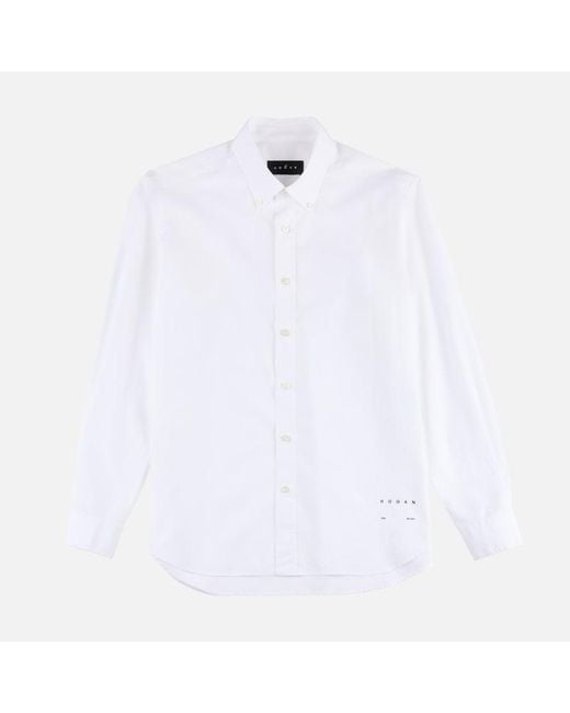 Classic shirt crafted in cotton poplin, with front placket and two-button cuffs. Refined and versatile, it comes with the Hogan logo printed on the bottom. Colour: white