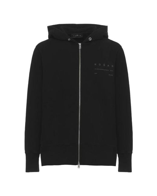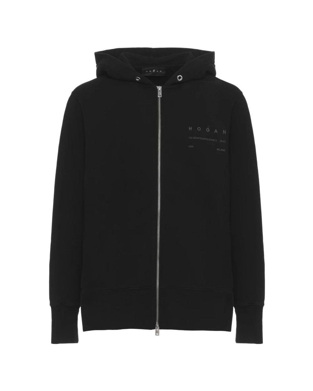 Hogan Cotton Zip-up Sweatshirt combines a zip-through hooded silhouette with a bold contrasting logo print for everyday layered wear. It’s designed for casual comfort with practical details like a full front zip and ribbed trims. Key attributes: Black | Cotton | Hood | Front zip fastening | Long sleeves | Elastic ribbed trims | Contrasting logo print | Dimensions & fit: Model is 190 cm and wears size L | Composition & care: 100% cotton | Hems: 95% cotton, 5% elastane Colour: black