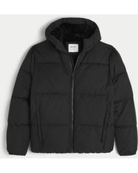 Hollister Men's Black Faux Fur-lined Puffer Jacket