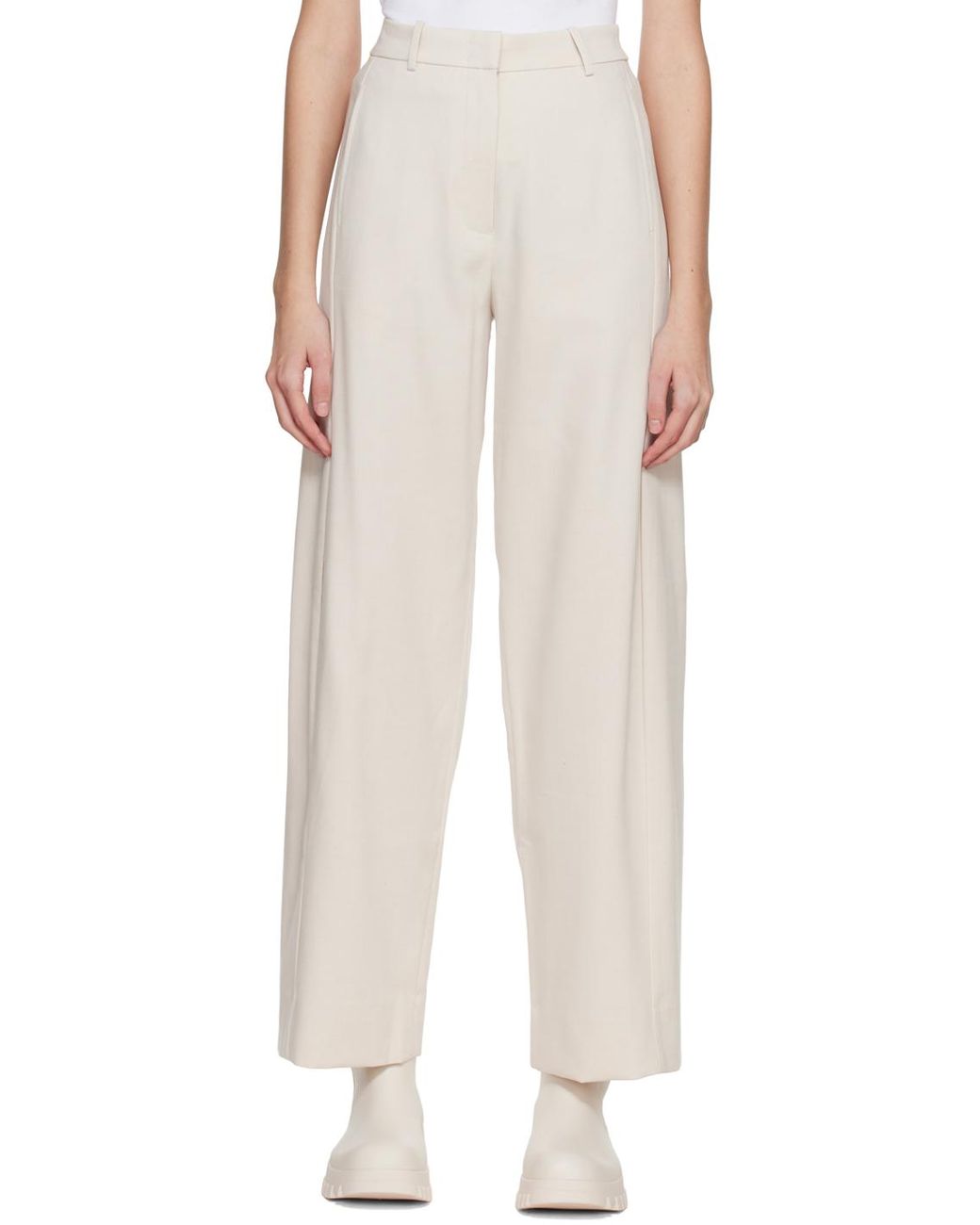 Wide-leg stretch polyester and viscose-blend twill trousers. · High-rise · Belt loops · Four-pocket styling · Zip-fly · Pleats at front and back Supplier color: Ecru Colour: multicolour