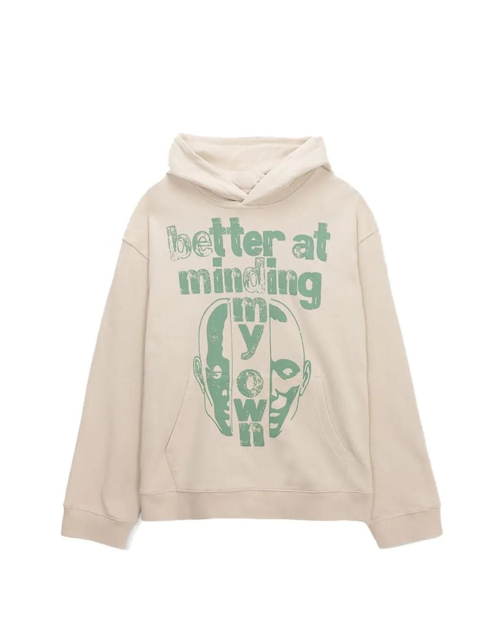 Taupe graphic print to the front logo print to the rear slouchy hood drop shoulder long sleeves front pouch pocket ribbed cuffs ribbed hem Size: S. Gender: Male. Material:Cotton. Colour: white