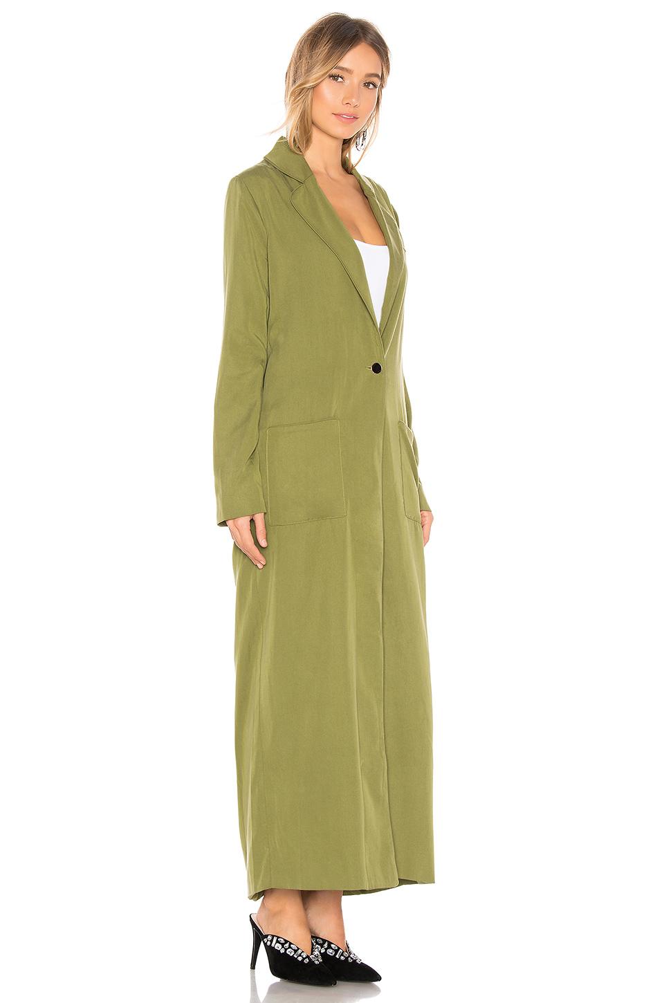 Go to REVOLVESelf: 87% modal, 13% poly. Lining: 100% viscose. Dry clean only. Front button closure. Button cuffs. Front patch pockets. Made in Turkey. Colour: green