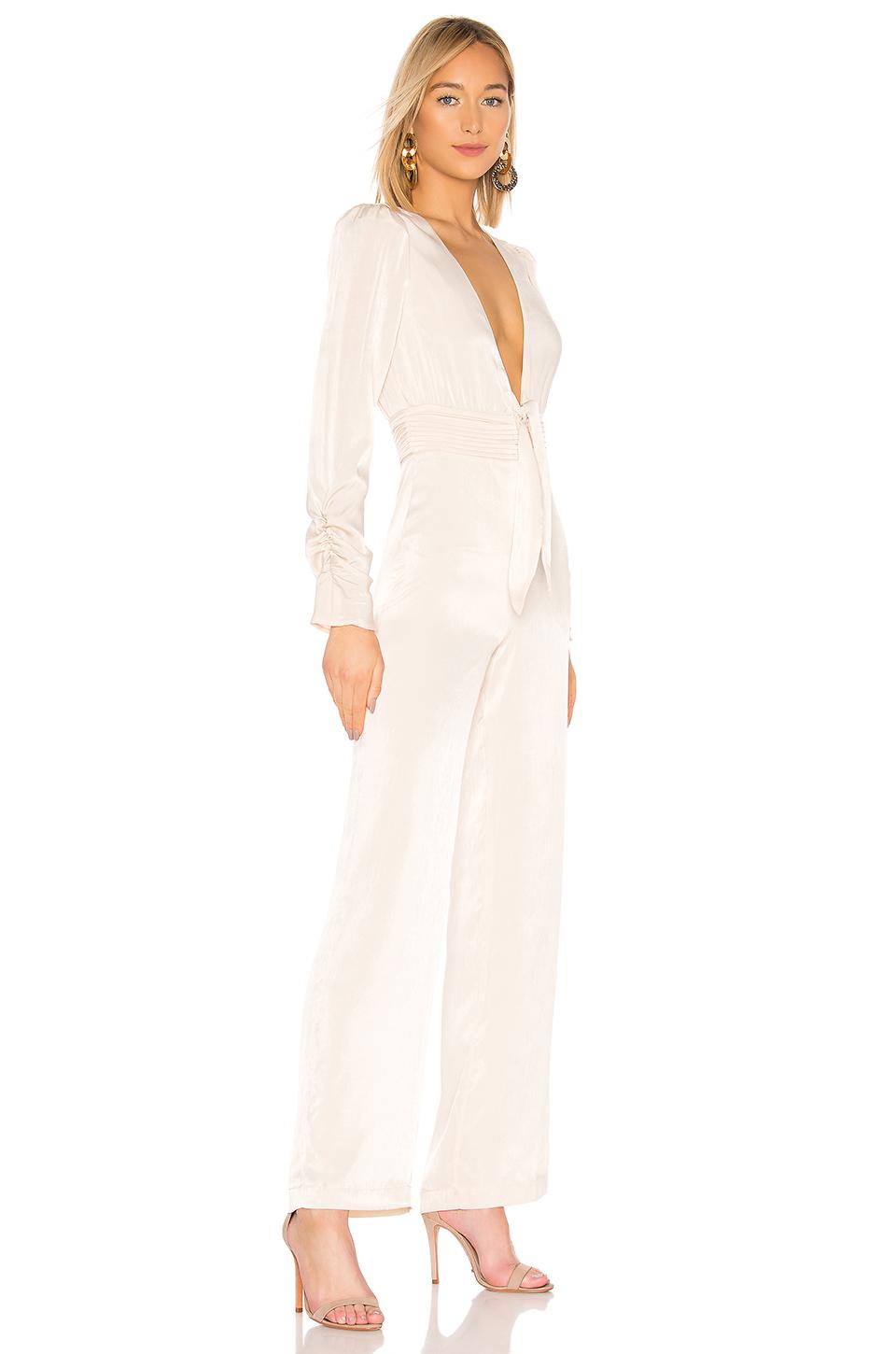 Go to REVOLVEHouse of Harlow 1960 X REVOLVE Vera Jumpsuit in Cream. Hand wash cold. Satin crepe fabric. Zip fly with tie closure. Pleated waist. Ruched sleeves. Body measures approx 30 in lengthFront neckline drop measures approx 15 in lengthSleeve measures approx 24 in length20 at the knee and 20 at the leg opening. Bohemian Chic - a term coined to describe the effortless style of the quintessential laid-back LA girl with an eye for high fashion-Nicole Richie. Raised in the spotlight by famously creative parents, Nicole was born with an innate style vision, one she has cultivated through her notable jewellery collection, House of Harlow 1960. Launched in fall of 2009, Nicole has led the brand to a household name in a short two years, an accomplishment that reflects her ability to create a strong connection to each and every one of her devoted customers. The House of Harlow 1960 brand has evolved into a full-fledged collection, offering ready-to-wear, jewellery, sunglasses, footwear, and handbags. Colour: white