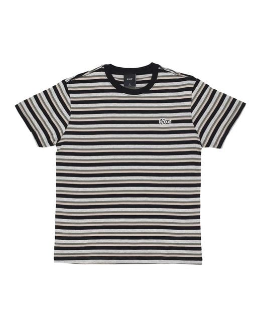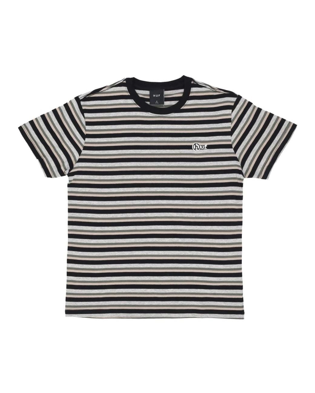 Elevate your casual style with this HUF Short Sleeve Crew Neck T-Shirt. Featuring a regular fit, all-over striped print, and the iconic HUF logo embroidered on the left side. Made from 100% cotton, this tee is both comfortable and stylish. Easy to care for with hand or machine wash, just check the label. Colour: black