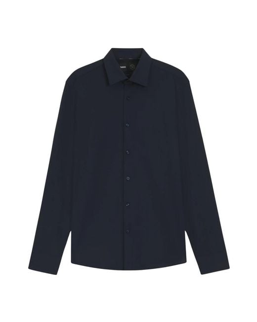 Boss Hank Shirt pairs a high-stretch jersey with a modern textured weave for a business-ready slim silhouette. The design balances comfort and a tailored look for everyday smart dressing. Key attributes: Blue | Polyamide | High-stretch fabric | Super-Flex performance | Button fastening | Button cuffs | Kent collar | Round cuffs | Modern textured weave | Dimensions & fit: Slim fit | Composition & care: 86% polyamide | 14% elastane | Machine wash 30°C delicate; do not bleach; do not tumble dry; iron low heat; do not dry clean. Colour: blue