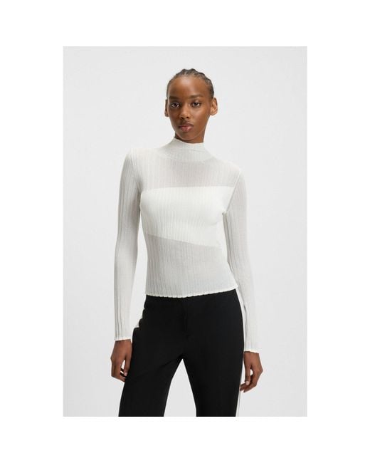 Women's White Mock-Neck Jumper With Sheer And Solid Effects