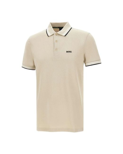 Hugo Boss Paddy Polo is a breathable cotton-piqué polo designed for a clean, polished look in warmer seasons. Its short-sleeve, flat-knit collar and three-button placket make it a versatile option for both casual and business casual outfits. Key attributes: Beige | Cotton | Breathable pique fabric | Three-button placket | Flat-knit collar | Short sleeves | Contrasting embroidered logo on chest | Sporty striped trims on collar and sleeve hems | Ribbed sleeve cuffs | Dimensions & fit: Regular fit | Composition & care: 100% cotton | Machine wash 30°C mild; do not bleach; do not tumble dry; iron low heat; do not dry clean. Colour: natural