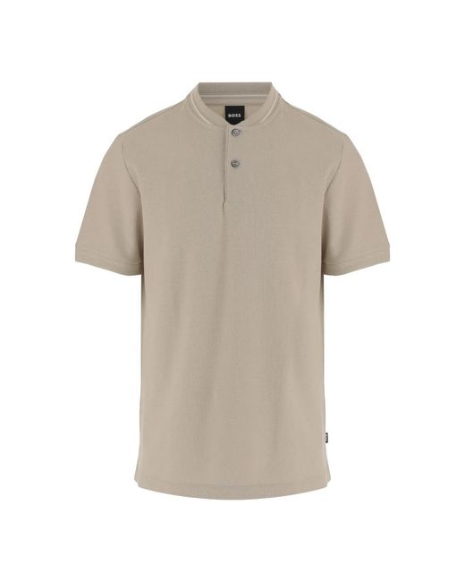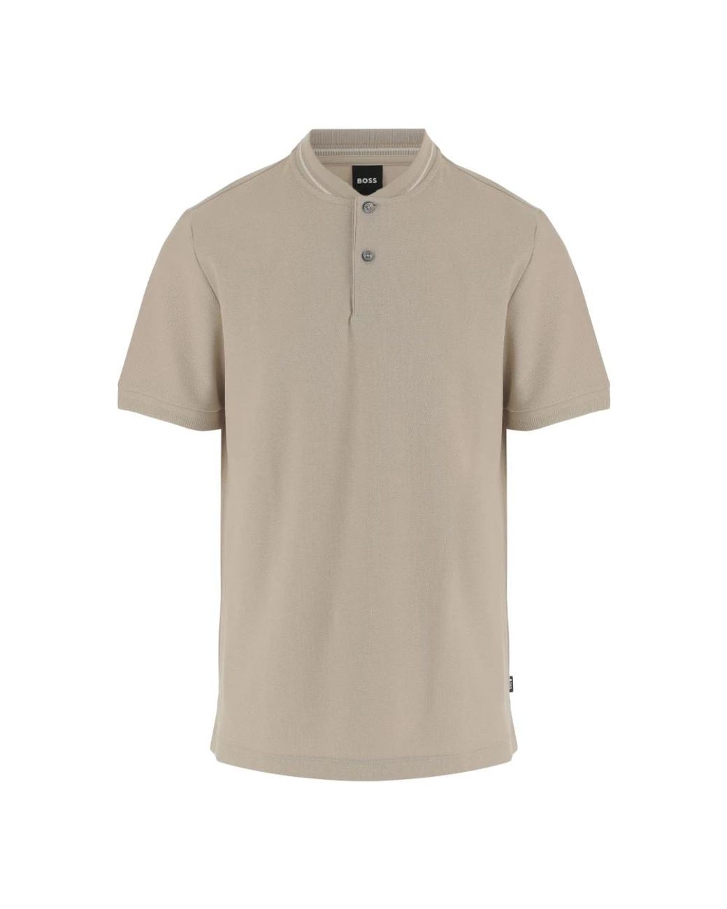 Hugo Polo shirt combines a classic round neck with the brand's iconic logo stripes for a clean, versatile look. Crafted in cotton with a front button placket and short sleeves, it works well for casual and smart-casual outfits. Key attributes: Beige | Cotton | Front button placket | Round neck | Iconic logo stripes | Short sleeves | Straight hem | Dimensions & fit: Height: 185 cm | Chest: 94 cm | Waist: 75 cm | Hips: 93 cm | Shoulder: 48 cm | Model is wearing size M. | Composition & care: 100% cotton Colour: natural