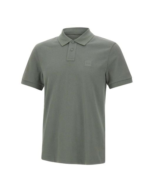 Boss Passenger Polo combines stretch cotton piqué with classic polo details for a clean, versatile addition to contemporary wardrobes. Key attributes: Olive green | Stretch cotton piqué | Stretch | Matching button fastening | Short sleeves | Flat-knit classic collar | Ribbed trims | Square logo patch on chest | Dimensions & fit: Slim fit — streamlined silhouette for polished casual and smart looks. Colour: grey