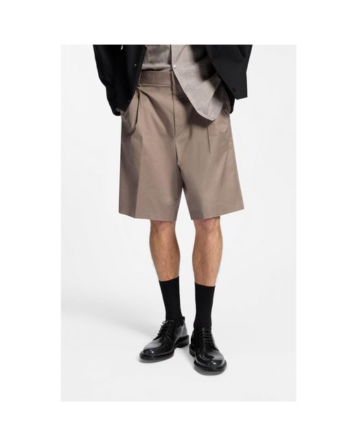 Crafted in paper-touch stretch-cotton twill, these HUGO Menswear shorts have a modern relaxed fit with front pleats. Matching jacket available. Colour: natural