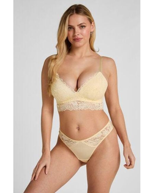 Induldge in elegance with this thong. The daring cut-out detail at the back creates a bold look, while ensuring a comfortable fit that sits beautifully against the skin. Leaves your bottom bare Regular fit Semi-transparent Lace Cut-out details Colour: natural