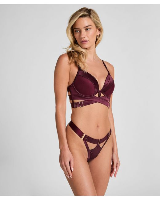 Unleash your bold side with our Colette string. Smooth satin accents bring a touch of luxury, while the dating cut-out details add a playful touch. Combine with the matching bra for a complete look. Leaves your bottom bare Cut-out details. Colour: red
