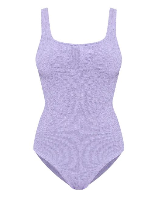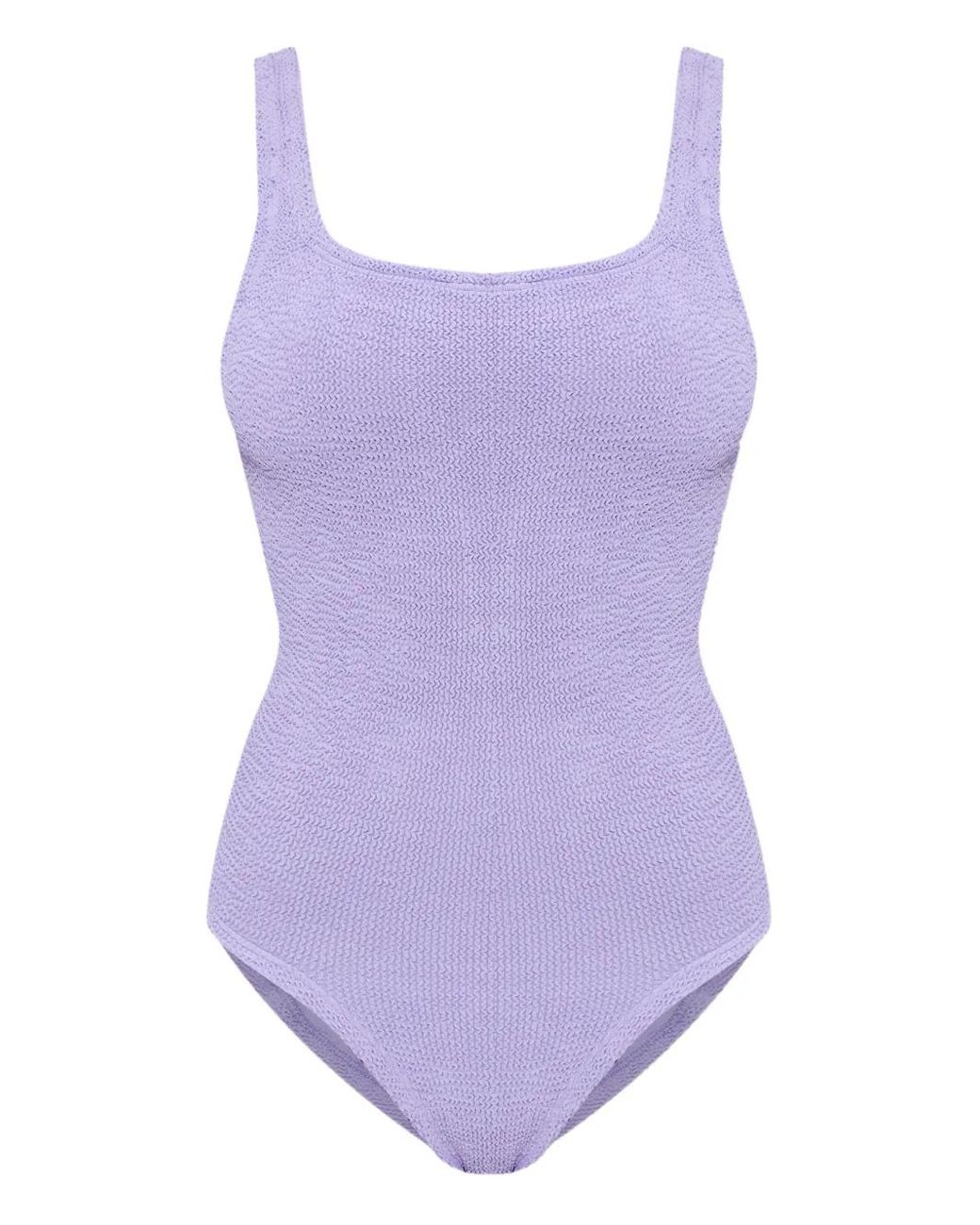 Women's Purple Coverage Square-Neck Crinkle Swimsuit