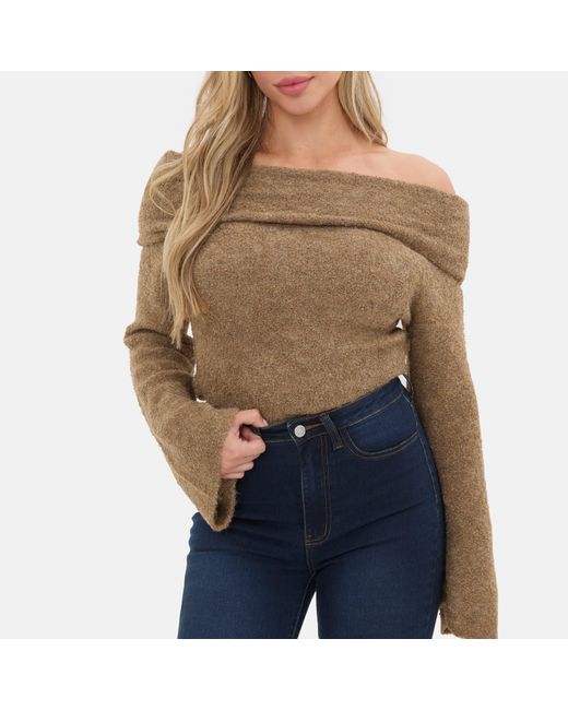 Soft, textured, and effortlessly chic, this boucl bandeau jumper is a standout layering piece. Crafted from a plush boucl knit, it features a strapless bandeau silhouette that brings a modern edge to cosy knitwear. Colour: brown