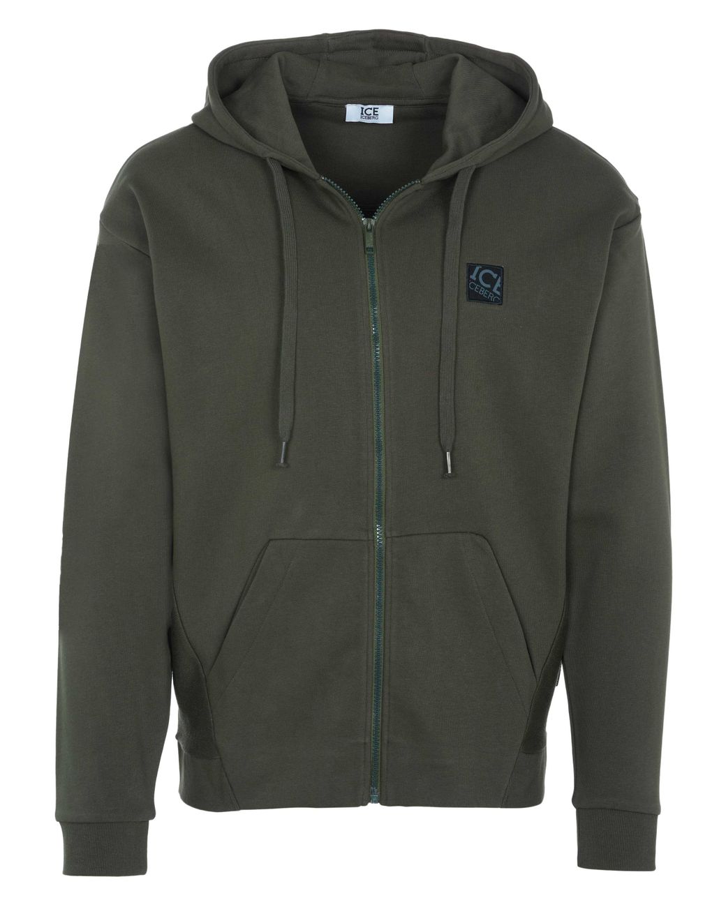 80% Cotton, 20% Polyester; Iceberg pullover; Model: S1M-E04163415334; High quality manufactured; Soft cotton blend; Hood with drawstring and drawstring; Zipper; Two front pockets; Elastic hem; Iceberg logo details Colour: green