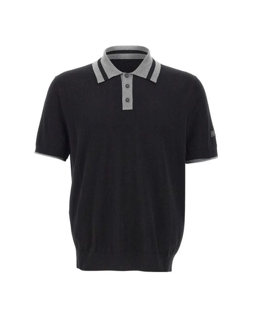 Iceberg Ribbed Trim Polo is a black cotton polo that adds subtle graphic contrast with grey trims on the collar and sleeve hems. Its clean silhouette and logo detail make it a versatile choice for everyday casual outfits. Key attributes: Black | Cotton | Three-button placket | Ribbed trims | Polo collar | Short sleeves | Grey contrasting trims on collar and sleeve hems | Iceberg label on left sleeve | Black logo buttons | Dimensions & fit: Regular fit | Composition & care: Cotton | Machine wash cold. Do not bleach. Do not tumble dry. Iron on low heat. Colour: black