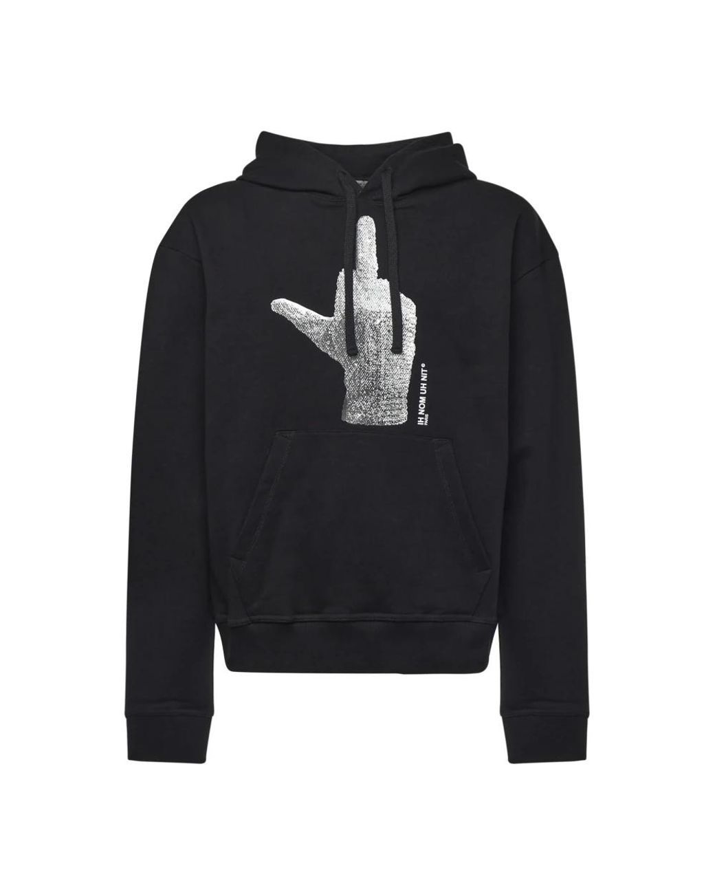 IH NOM UH NIT Cotton Hoodie crafted in Italy from pure cotton for everyday streetwear. It pairs a drawstring hood with a kangaroo pocket for practical, casual wear. Key attributes: Black | Cotton | Drawstring hood | Kangaroo pocket | Hooded neckline | Long sleeves | Ribbed cuffs and hem | Dimensions & fit: Model shown wearing size S | Composition & care: 100% Cotton | Hand wash cold (30°C) or delicate machine wash. Warm iron inside out with a protective cloth; avoid direct heat on prints. Do not steam, bleach, or tumble dry. Lay flat to dry. Colour: black