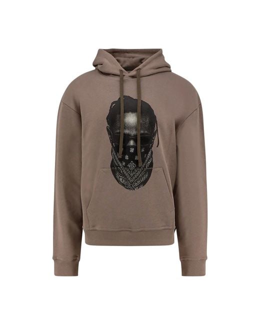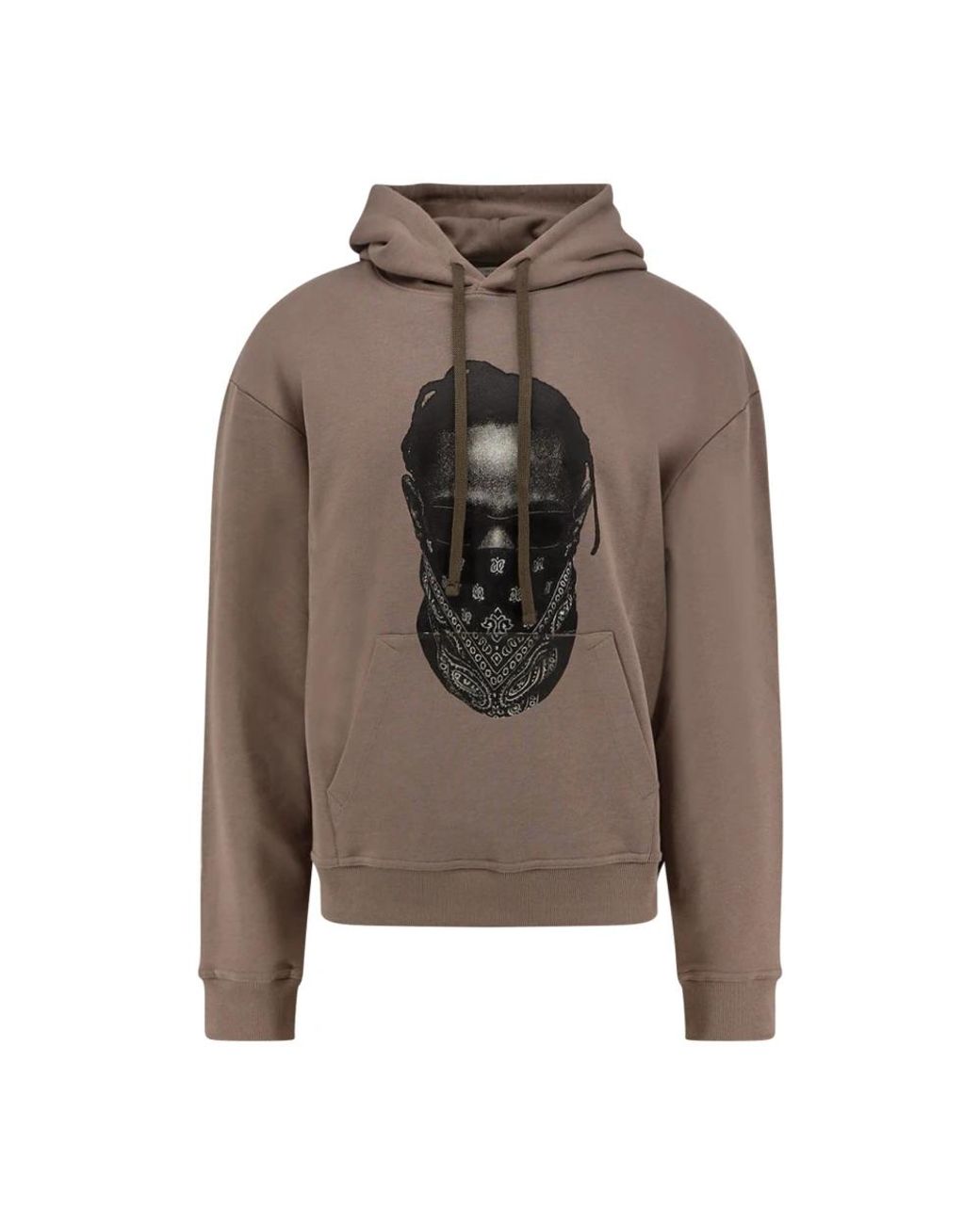 IH NOM UH NIT Hoodie with a signature mask print and ribbed trims. A relaxed, everyday cotton layer with an adjustable drawstring hood for practical, street-ready wear. Key attributes: Grey | Fog | Cotton | Adjustable drawstring hood | Long sleeves | Mask print | Ribbed cuffs and hem | Made in Italy | Dimensions & fit: Relaxed fit | Composition & care: 100% Cotton | Hand wash cold. Do not bleach. Do not tumble dry. Iron on low. Colour: brown