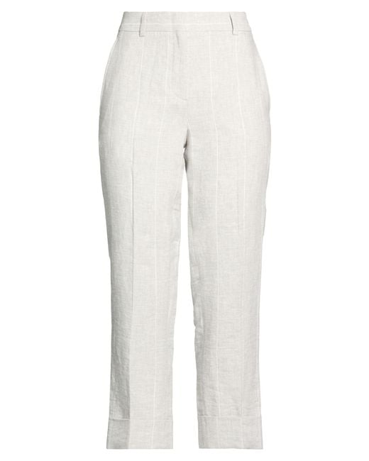INCOTEX. tapered trousers, linen, pinstriped, no appliqués, high waisted, belt loops, regular fit, zip fastening, hook fastenings, folded hem, slit pockets, welt pocket, dry clean, do not bleach, do not tumble dry, power dressing meets elegance in this chic office outfit that will inspire confidence every day. 100% Linen.