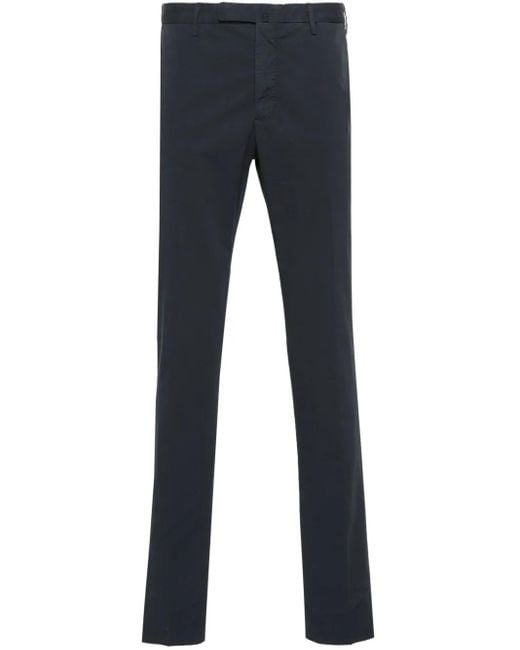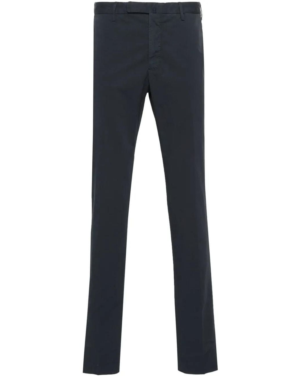 Navy blue cotton blend twill weave belt loops at the waist two side slash pockets pressed crease two rear jetted pockets internal locker loop internal logo tag tapered leg concealed front button, hook and zip fastening Size: 46. Gender: Male. Material:Cotton/Spandex/Elastane/Cotton/Polyester. Colour: blue