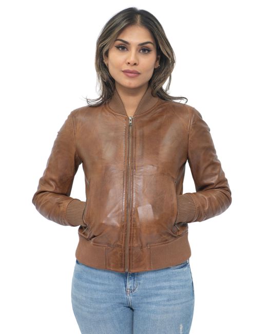 Women's Brown Ma-1 Bomber Jacket-Abbotsford