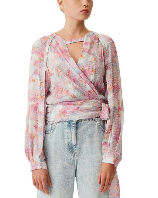 About the brand: Globally-inspired combinations. Long Sleeve Top in light pink multicolor Main: 100% viscose Dry clean only Imported