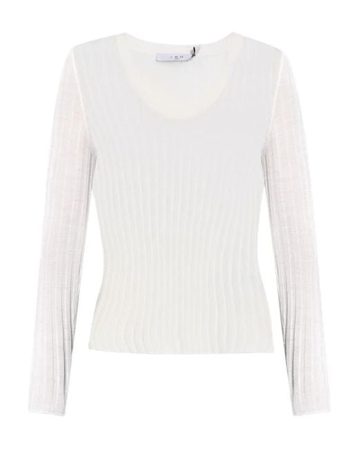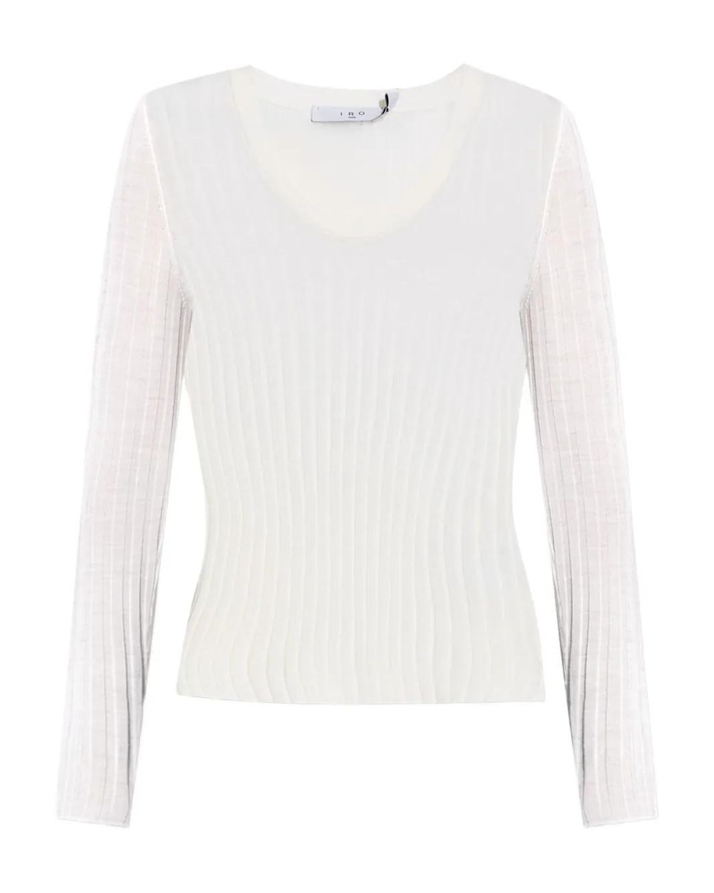 White ribbed knit round neck long sleeves semi-sheer Size: M. Gender: Female. Material:Wool. Colour: white