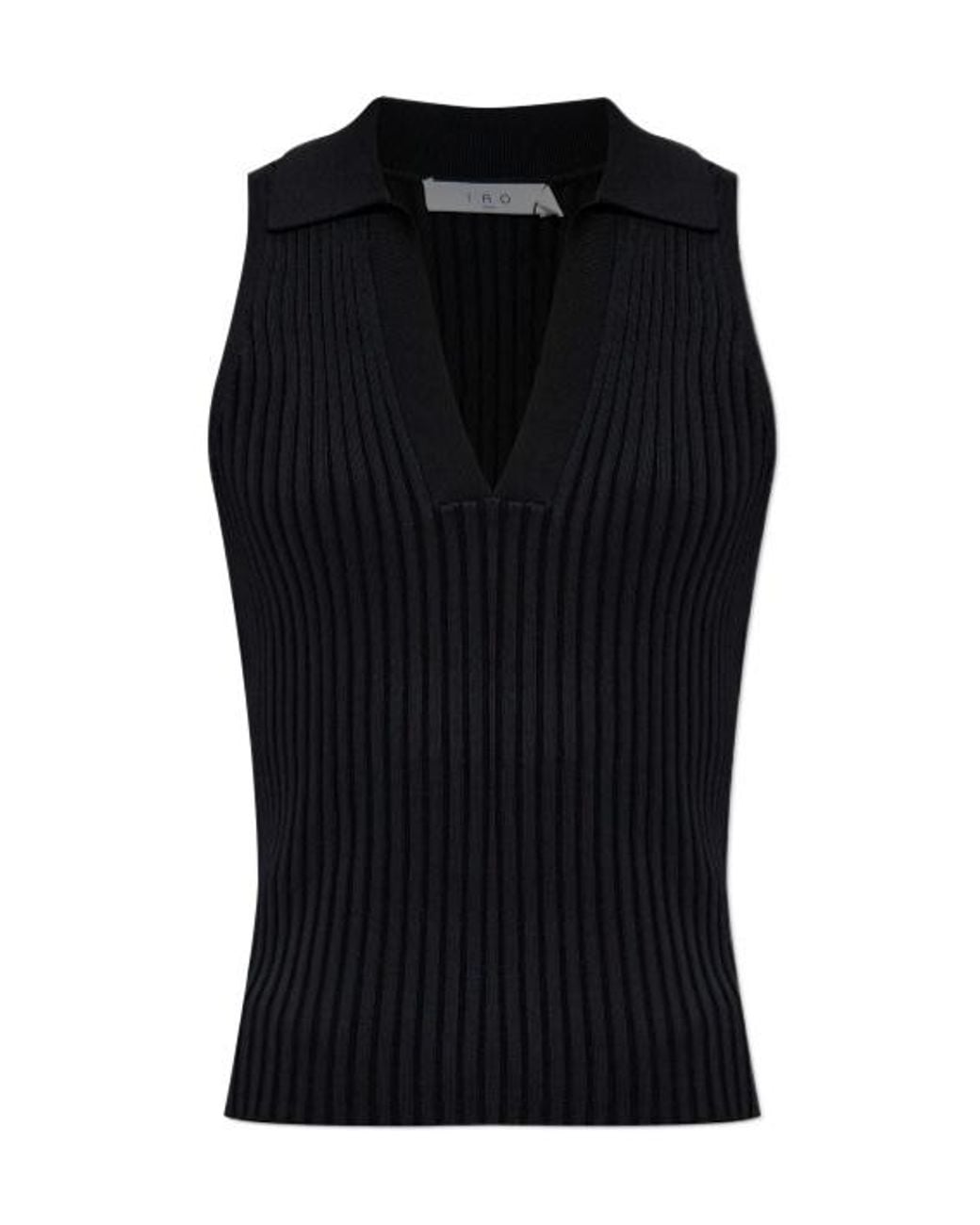 Sleeveless, V-neck, vertical ribbing. Colour: black