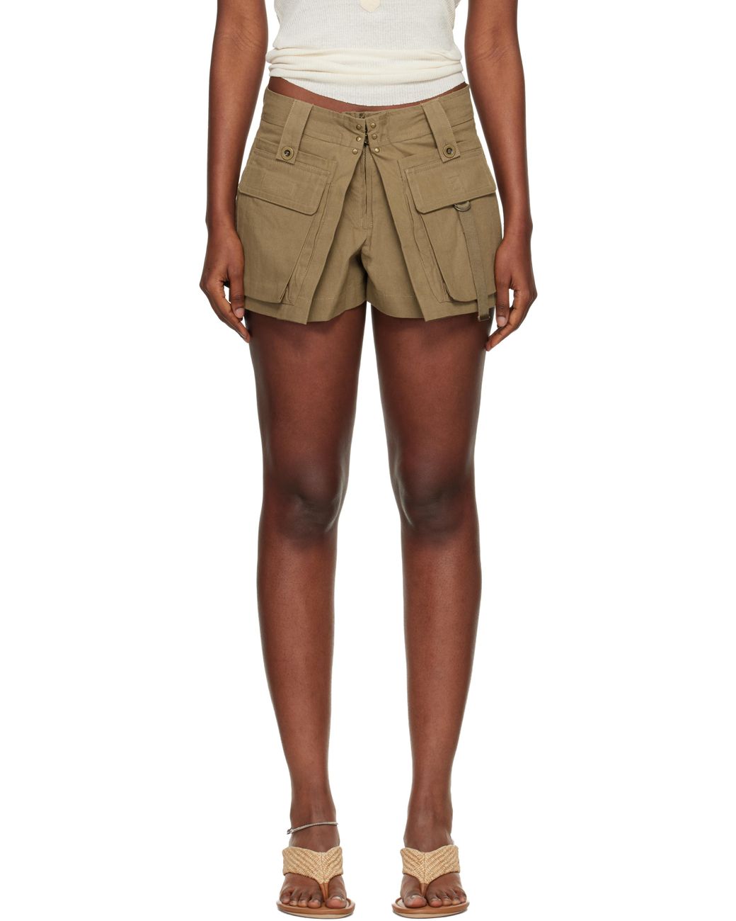 Cotton canvas shorts. · Belt loops · Four-pocket styling · Zip fly with hook-eye fastening · Pleated construction at front · Cargo pockets at front Supplier color: Khaki Colour: multicolour