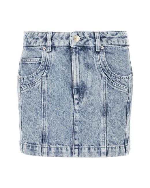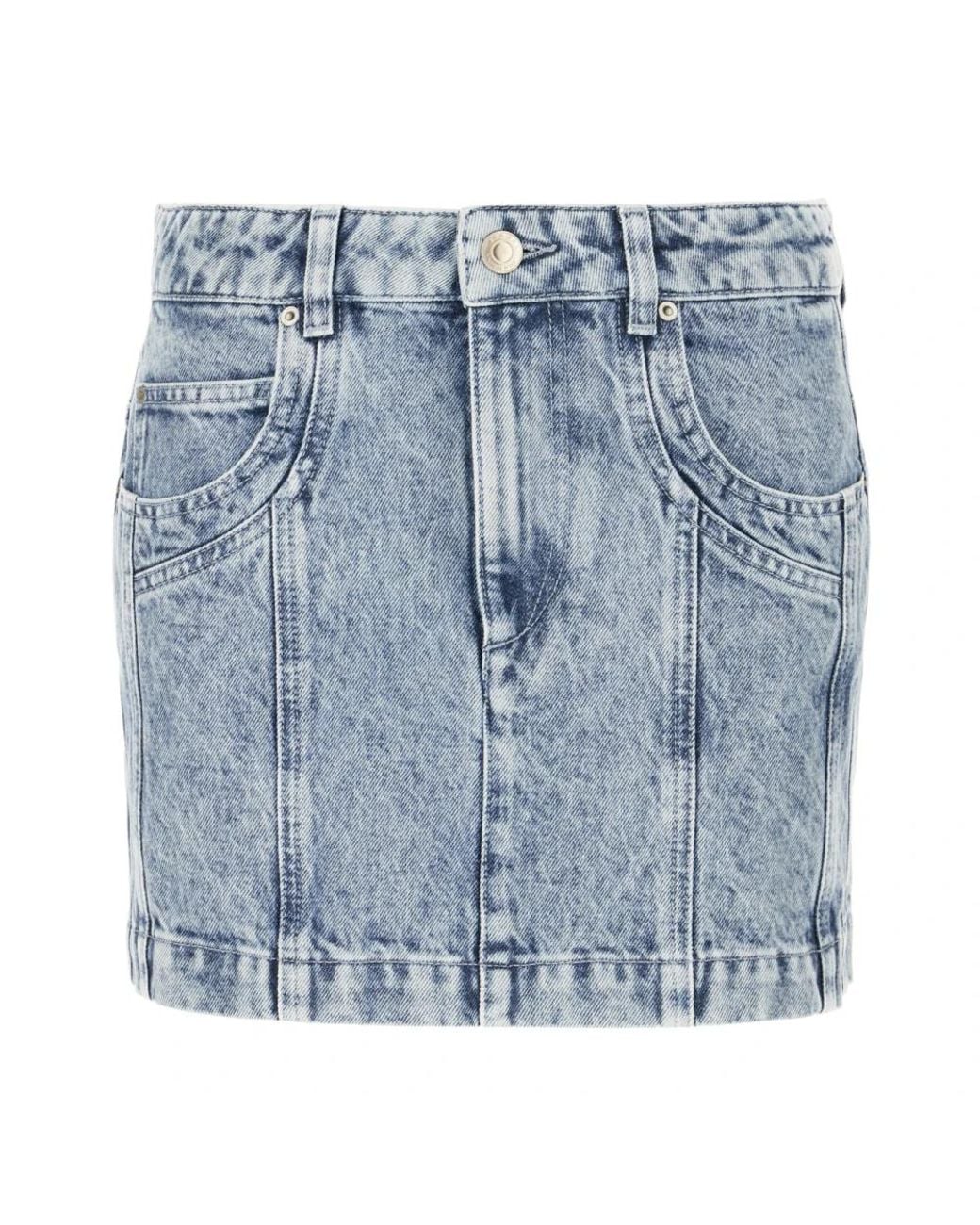 Marant étoile Juana Denim Mini Skirt is a straight-cut denim mini from Marant étoile, designed for everyday casual wear with a clean, modern silhouette and five-pocket utility. Key attributes: Blue | Light blue | Cotton | Five pockets | Straight fit | Exposed seams | Mini length | Dimensions & fit: Straight fit | Composition & care: 100% Cotton Colour: blue