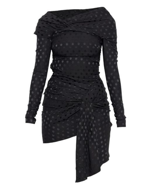 - Draped Polka-Dot Mini Dress
